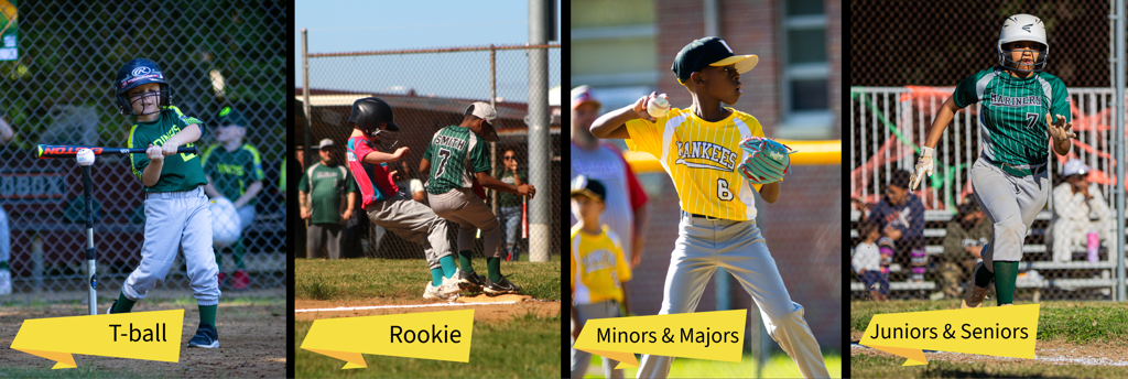 • Helmets & bats to borrow for each division's practice & games.